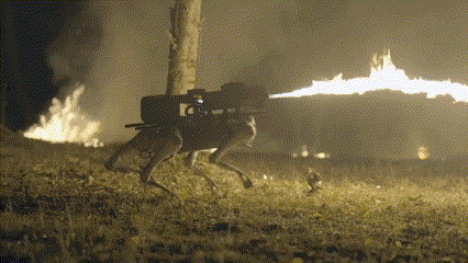 And since Elon Musk introduced to the world the adult authorization to shop for flame torchers, it is only fair that even robo-doggy can sport such a USEFUL boy dream fire spitting device. 😈